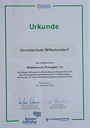 Mit unserem Projekt - Kooperation BienenWelten und Grundschule, haben wir bei dem Wettbewerb "Preisgekränt" der Bürgerstiftung Ravensburg in Kooperation mit dem Kreisjugendring Ravensburg e.V. erfolgreich teilgenommen und wurden mit einem Anerkennungspreis von 300,-€ ausgezeichnet.