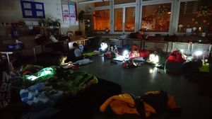 Nach dieser eher ruhigen und geselligen Phase wurde es, in dem bei Dunkelheit so ganz anders wirkenden Schulhaus, etwas turbulenter. Es wurde Verstecken im Dunkeln gespielt.